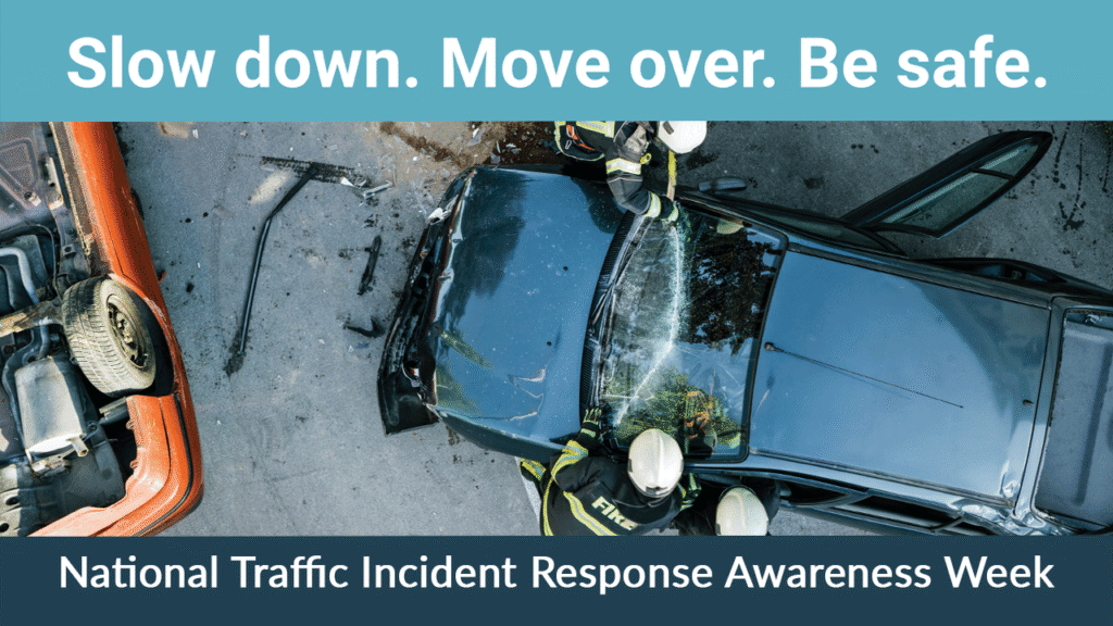 Remind all road users to slow down, move over, and remain alert when approaching all forms of traffic incident response activity –whether aiding a stalled vehicle, clearing roadway debris, or responding to a crash.